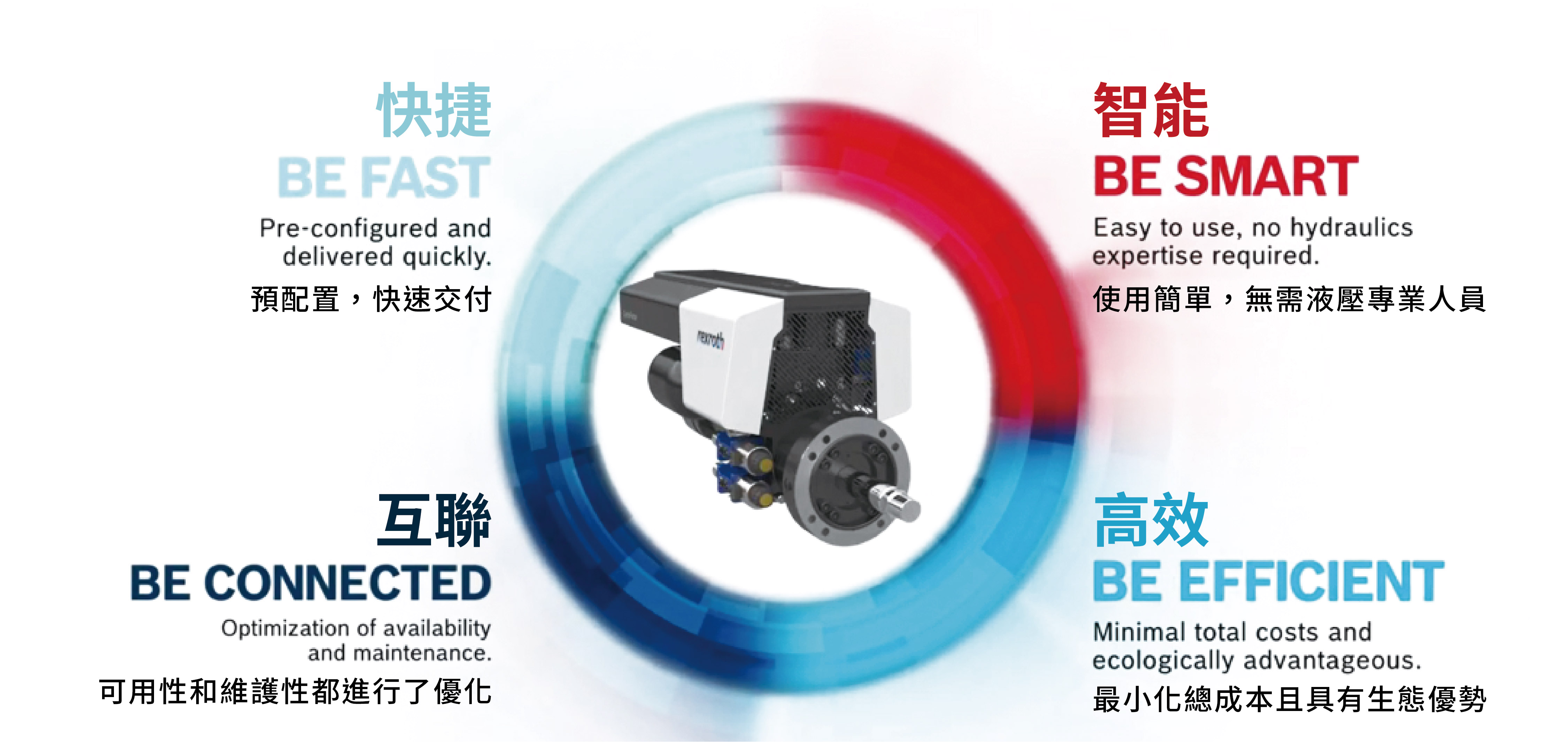 憑藉CytroForce革命性的設計理念,博世力士樂為電液線性驅動軸創造了全新的吸引力——不僅僅針對壓機和機床的應用,還涉及到各種具有不同動力和運動任務的更廣泛的工業應用。設備製造商和用戶都可以從這種全新的,靈活的,但卻標準化的解決方案中獲益。設備製造商們能夠獲得易於配置的定制化設計,並且幾乎無需太多工程工作即可使用該解決方案。最終用戶們將受益於更小的佔地面積,更低的噪聲排放以及更低的維護運營成本。這種解決方案的用戶友好性由此顯而易見!